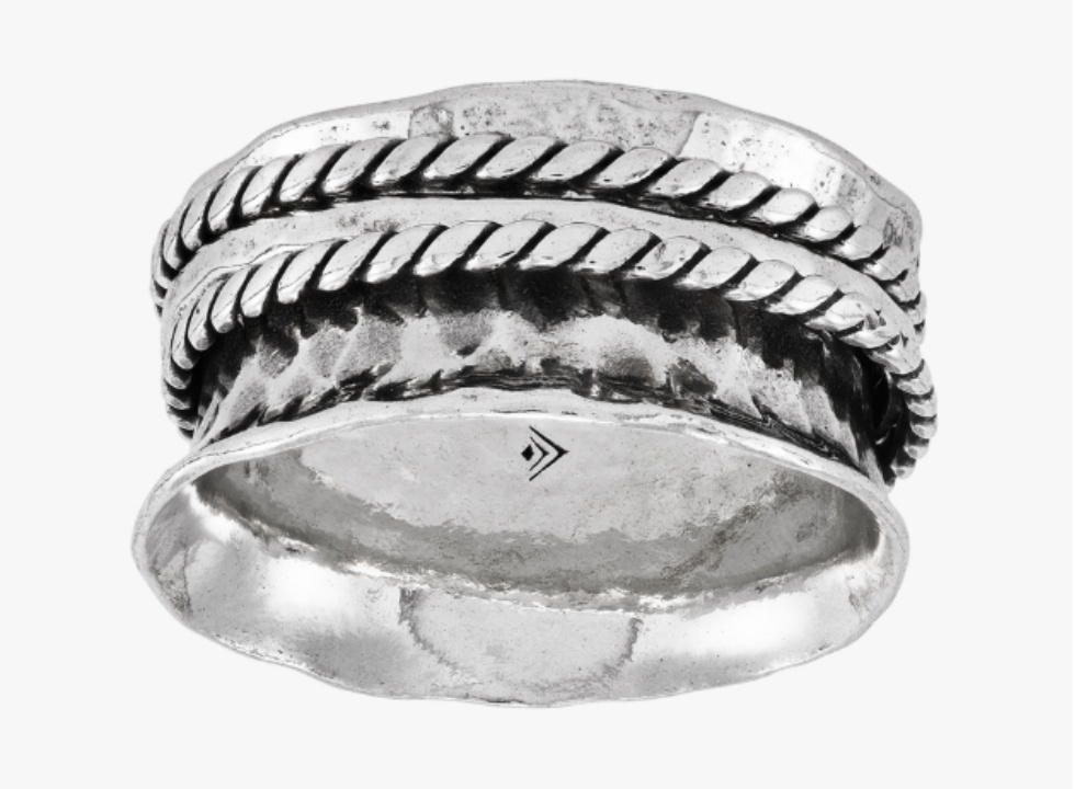 True to its name, this ring brings a sense of calm and balance with its symmetrical, channel-set mixed stones. The colors are serene—think blues, greens, and neutrals—and the wide band makes a definite statement of grounded style. It’s a piece that feels both powerful and peaceful.